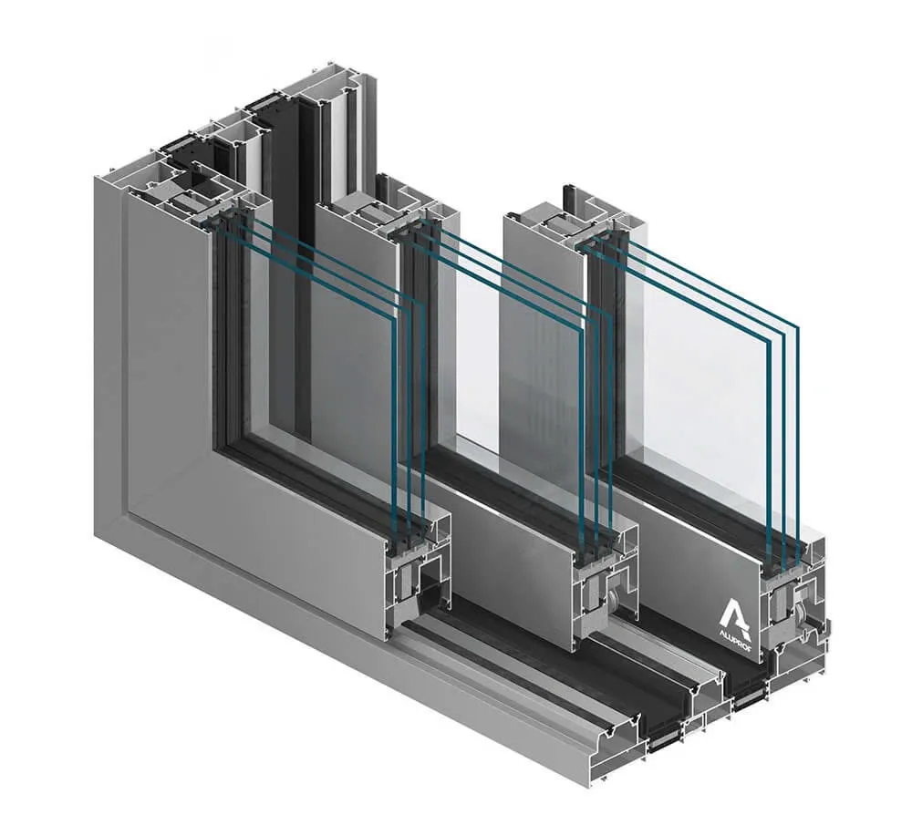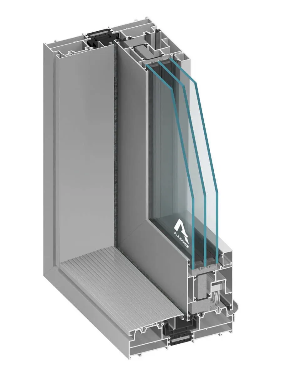 Cửa có hai tùy chọn về cách nhiệt: ST (tiêu chuẩn) và HI (cách nhiệt cao cấp). Hệ thống profile được thiết kế để hỗ trợ kích thước cửa lớn, có thể lắp kính hai hoặc ba lớp, giúp nâng cao hiệu suất cách nhiệt và cách âm.